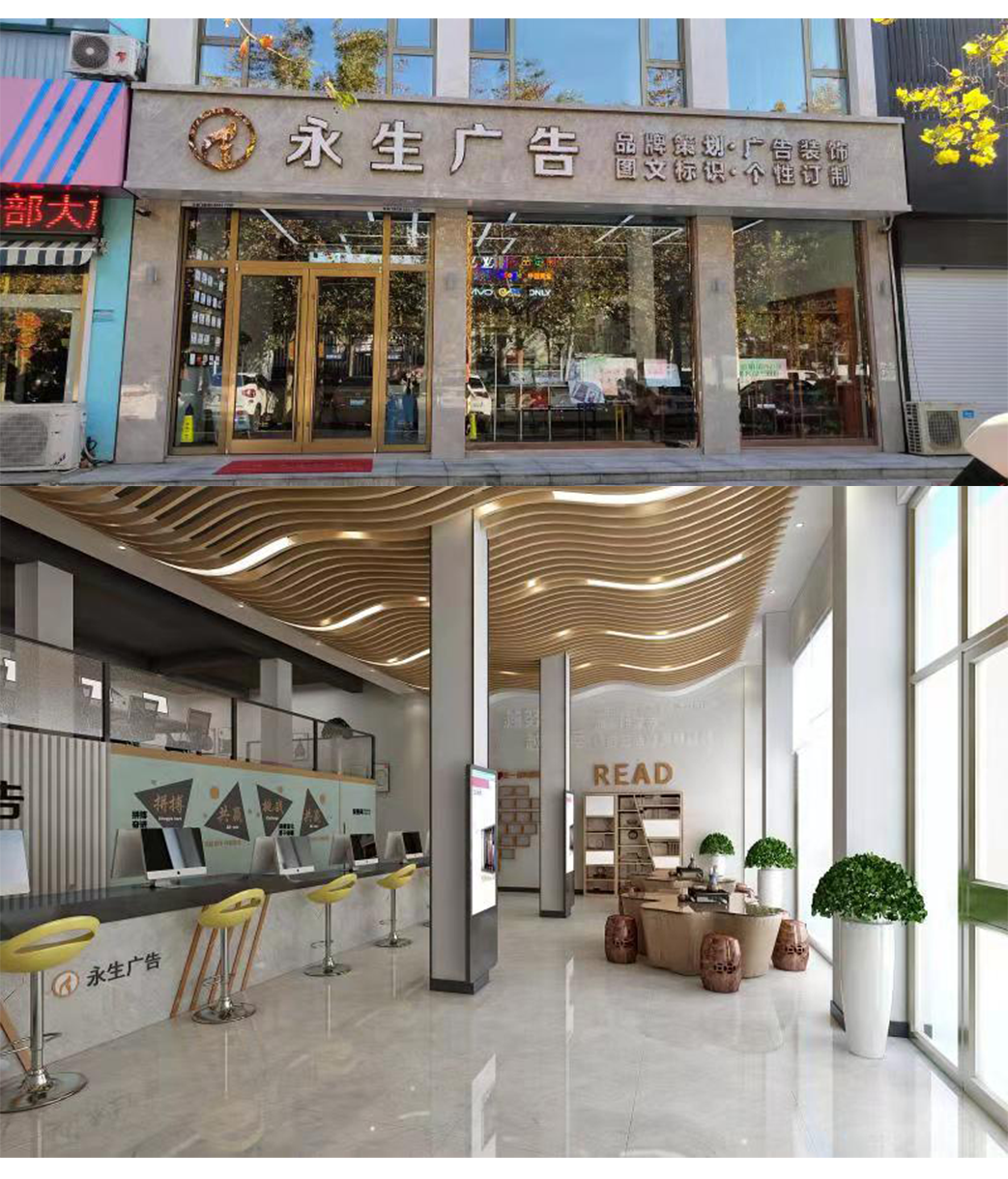 公司自有數(shù)碼沖床設(shè)備、500W光纖機(jī)、高精度大幅面噴繪機(jī)、寫真機(jī)、UV機(jī)、多種大小型雕刻機(jī)、吸塑機(jī)、全自動(dòng)圍字機(jī)、自動(dòng)開(kāi)槽機(jī)、激光焊接機(jī)、拋光機(jī)等生產(chǎn)加工設(shè)備,擁有完善的設(shè)計(jì)團(tuán)隊(duì)、技術(shù)團(tuán)隊(duì)、施工團(tuán)隊(duì)、售后團(tuán)隊(duì),可為廣大客戶提供室內(nèi)裝修、店招門頭、精神堡壘、黨建標(biāo)識(shí)、標(biāo)識(shí)標(biāo)牌、宣傳欄、LED顯示屏、警示標(biāo)識(shí)、精品字、證卡胸牌、證書獎(jiǎng)杯、燈箱、桌牌、定制禮品、展具、噴印等多種專業(yè)廣告服務(wù)...